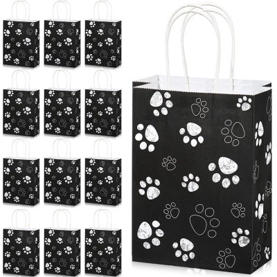 AWQOIU 12 Pcs Black & White Paw Print Paper Bags – Cute Animal-Themed Gift Bags for Parties, Pet Events & Favors