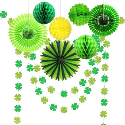 AWQOIU 9 Pcs Green Fans Baby Shower Party Decorations – Hanging Paper Fans for Gender Reveal, Nursery, & Party Decor