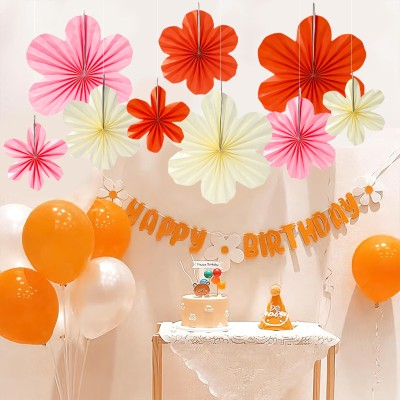 AWQOIU 9 Pcs Hanging Paper Flowers Birthday Party Decorations – Elegant Paper Fans for Weddings, Bridal Showers, & Events